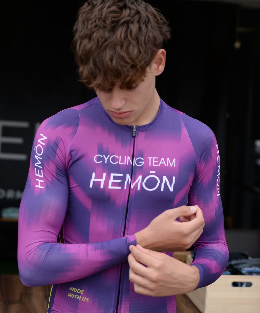 El nuevo maillot largo RACE representa la evolución 2.0 del modelo de verano, diseñado para ofrecer un rendimiento superior en las jornadas más exigentes. Confeccionado en tejido de licra microperforada en el frente y la espalda, proporciona una excelente transpirabilidad y ajuste, manteniendo la temperatura corporal estable incluso en esfuerzos prolongados.